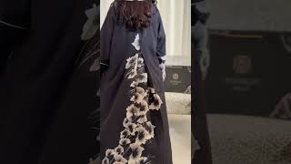 عباية كريب فويل ملكي بتصميم راقٍ ينساب برقي وأناقة، مزيّنة بلمسة فنية فريدة وتكتمل بطرحة شيفون فاخرة من نفس القماش، لإطلالة تفيض فخامة ونعومة.