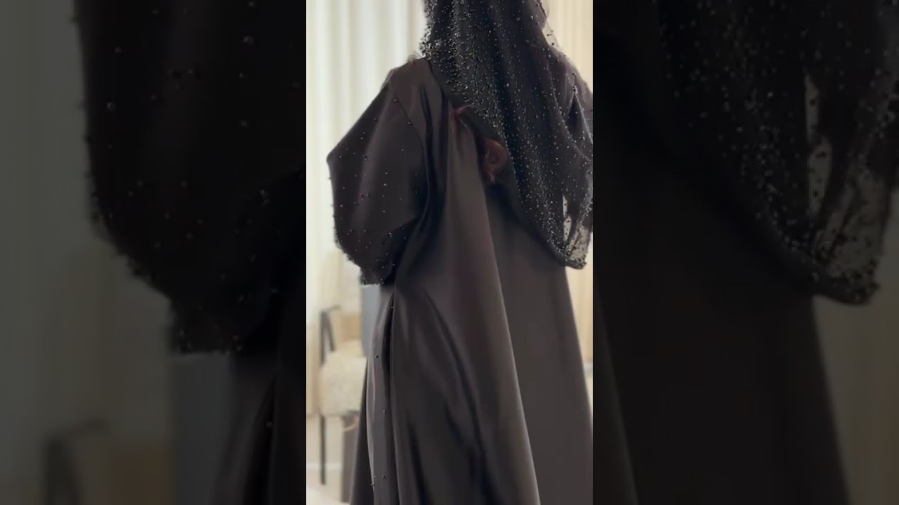 عباية من قماش كريب بتصميم انيق مزين بتل مشغول باللؤلؤ , مع طرحة شيفون مطابقة لإطلالة راقية ومميزة .